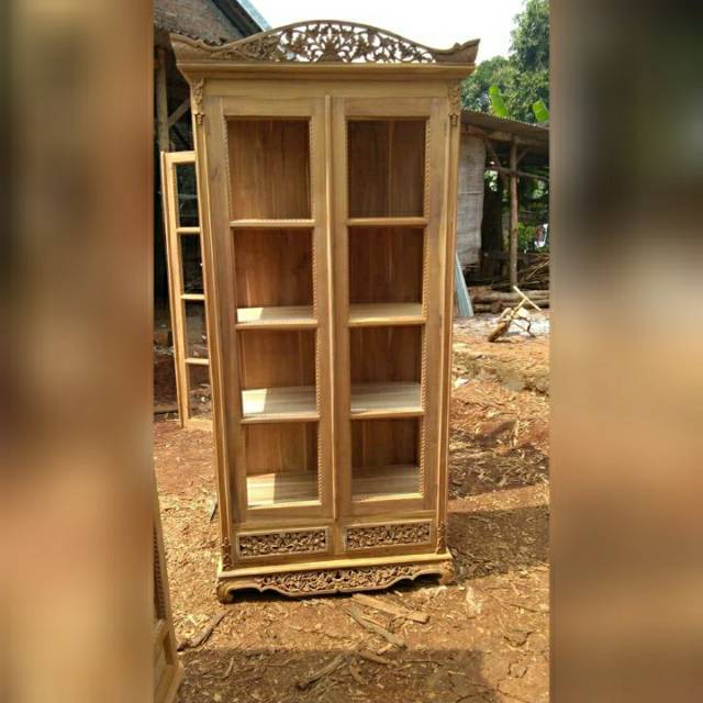 Mebel Jati Produksi Jepara Rak Lemari Buku Boneka Hiasan . Sumber Gambar : shopee.co.id
